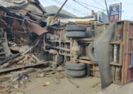 Diduga Sopir Mengantuk, Truk Pakan Ternak Seruduk Warkop dan Warung Makan
