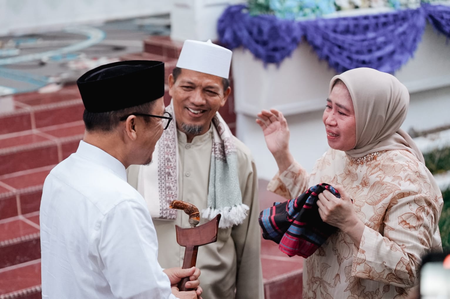 Usai doa bersama melantun, Fatmawati Salim melangkah maju dengan mata berkaca-kaca. Di tangannya, terselip sebilah keris yang dibalut nilai sejarah dan penghormatan. Keris tersebut diserahkan langsung kepada Suhardi Duka sebagai simbol ikatan batin dan apresiasi mendalam.