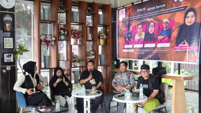 Ruang Redaksi — Koalisi Advokasi Jurnalis (KAJ) Sulawesi Selatan menggelar dialog akhir tahun di Cafe Lorong, Jalan Salemba, Kota Makassar, Minggu (28/12/2025). Dialog ini mengusung tema ‘Tapak Tilas Kebebasan Pers Sulsel dalam bayang-bayang otoritasrisme’. Kegiatan ini menghadirkan empat narasumber, yakni Koordinator KAJ Sulsel Idris Tajannang, Direktur LBH Pers Makassar Fajriani Langgeng, Ketua Majelis Etika AJI […]