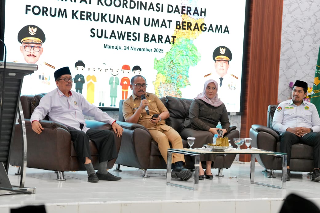 Ruang Redaksi – Gubernur Sulbar, Suhardi Duka (SDK) menghadiri Rapat Koordinasi (Rakor) Daerah Forum Kerukunan Umat Beragama (FKUB) Sulbar yang digelar di Aula Kantor Kanwil Kemenag Sulbar, Senin, (24/11/2025).