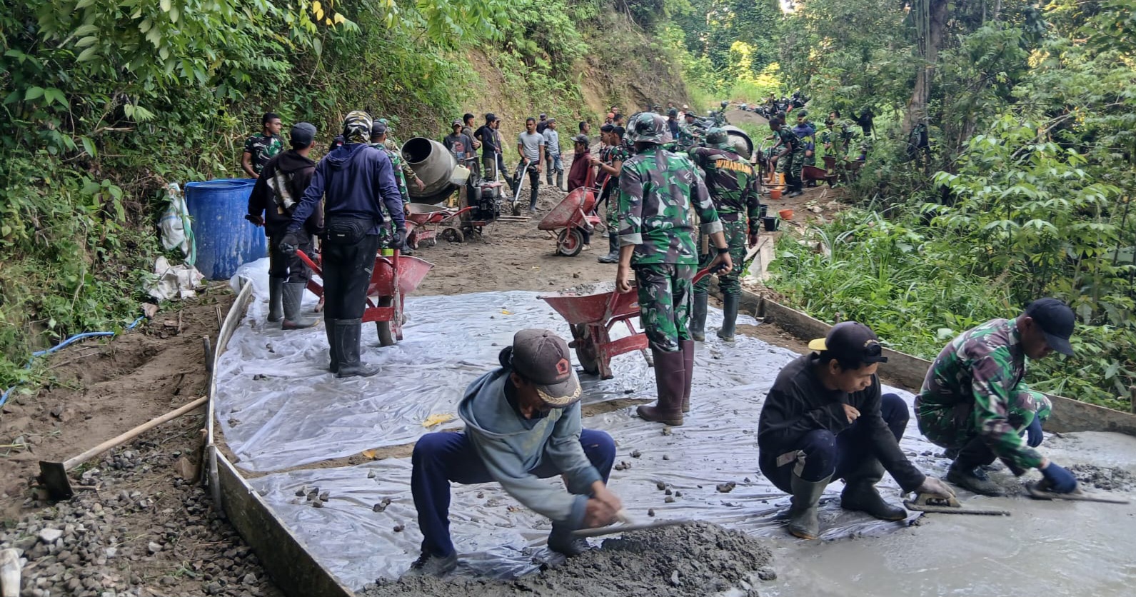 “Alhamdulillah hari ini progres rabat beton sudah mencapai 85 persen. Kami optimistis seluruh sasaran fisik dapat diselesaikan tepat waktu hingga penutupan TMMD,” ujar Kapten Inf Subarkah.