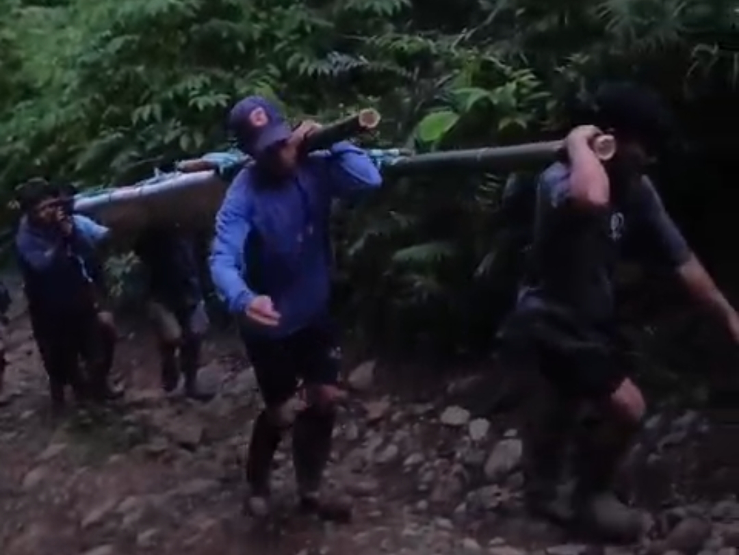 Warga secara bergotong royong menandu jenazah tersebut sejauh 18 kilometer melewati jalan rusak dengan beragam kondisi. Mulai tanah licin, lalu menanjak dengan kontur tanah bebatuan bahkan mereka juga harus menyeberangi sungai lantaran tidak adanya akses jembatan diwilayah tersebut.