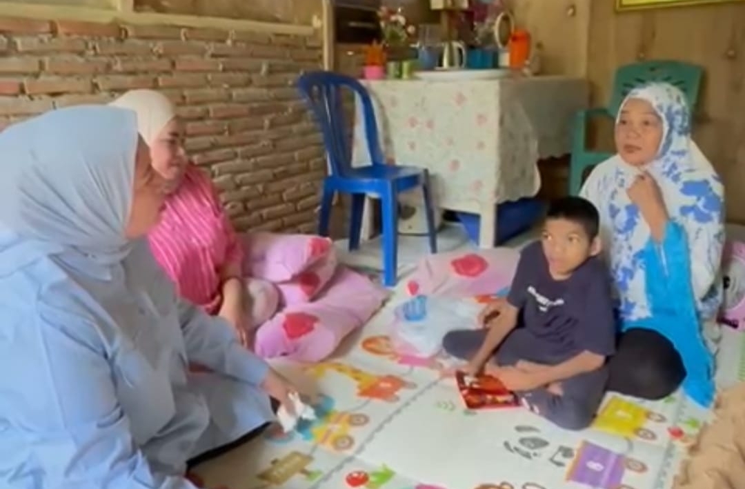 Setibanya di rumah sederhana tersebut, suasana haru menyelimuti pertemuan. Fatmawati tampak menyapa Fadil dengan penuh kelembutan. Sembari duduk bersama keluarga, ia mendengarkan langsung getirnya perjuangan orang tua Fadil yang merawat sang anak dengan segala keterbatasan ekonomi.