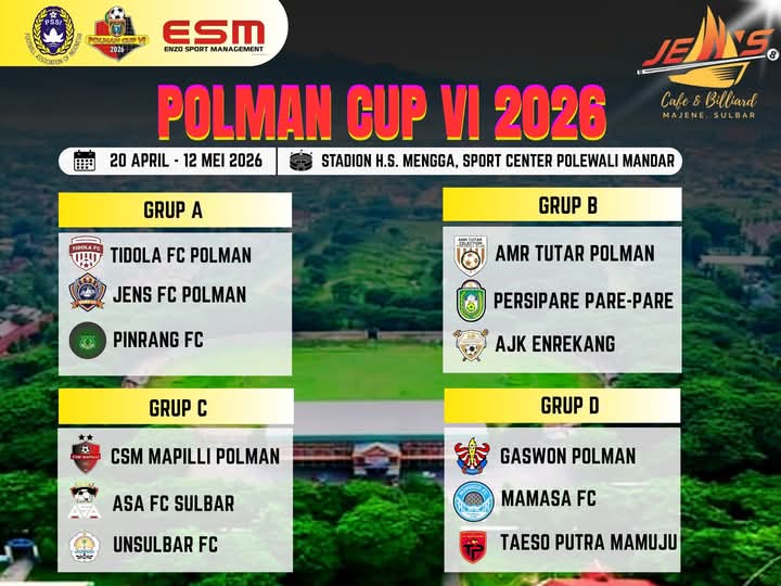 Ruang Redaksi – Turnamen sepak bola bergengsi di Sulawesi Barat, Polman Cup VI 2026, dipastikan segera bergulir. Bertempat di Stadion H.S. Mengga, Sport Center Polewali Mandar, kompetisi tahun ini menjanjikan persaingan yang lebih sengit dengan peningkatan total nilai hadiah bagi para pemenang.
