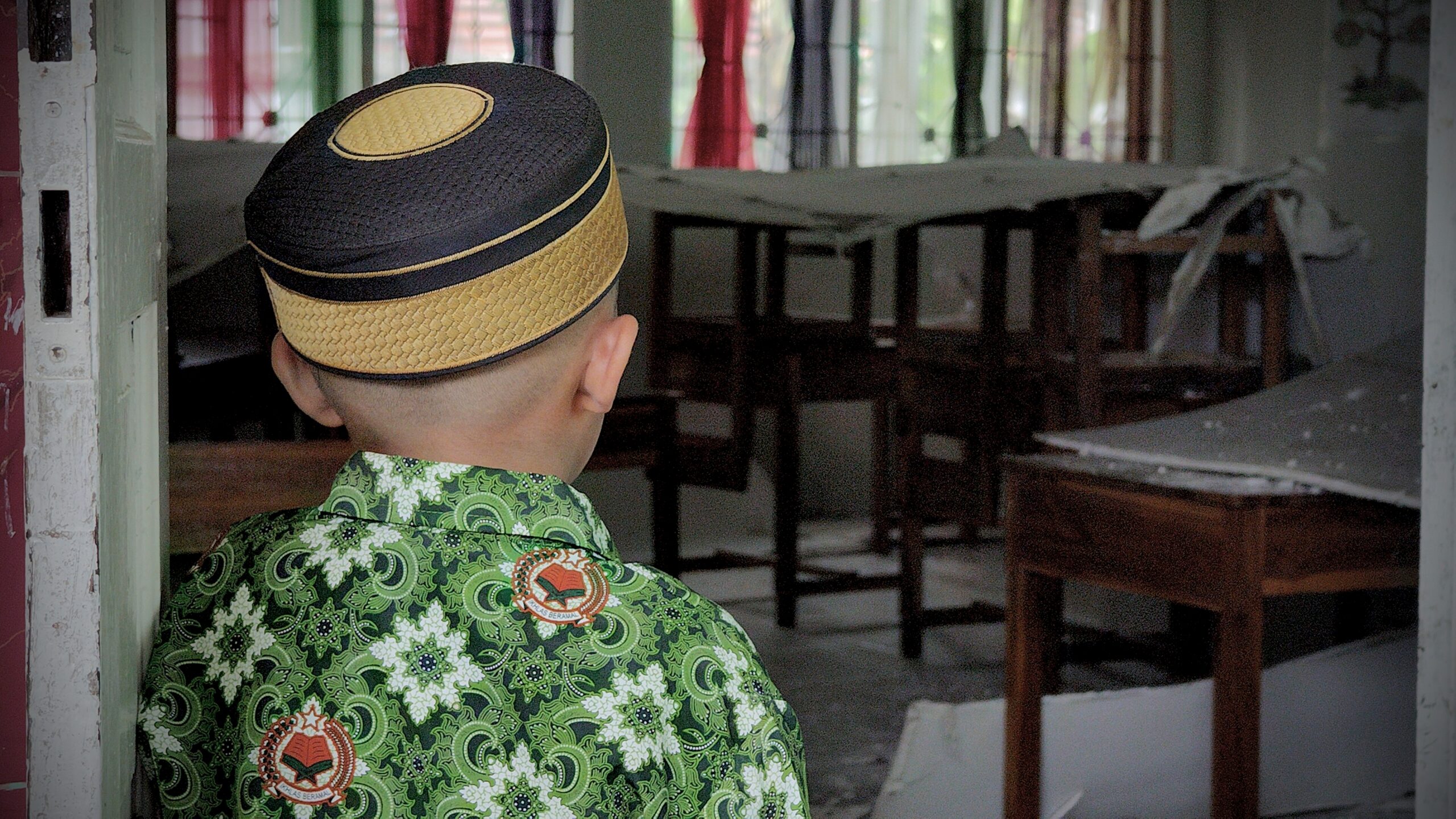 “Untuk sementara siswa belajar di aula, nanti setelah dibersihkan baru pindah kembali kesini, jumlah siswa yang ada diruangan ini ada 14 orang,” ujarnya.