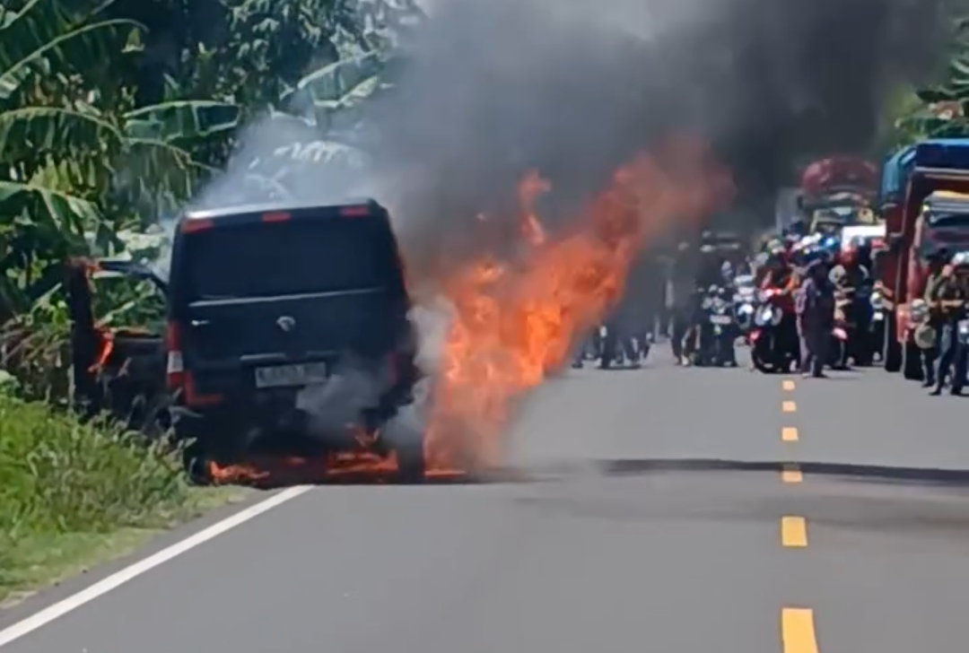 Beruntung Supir dan satu orang penumpang berhasil selamat setelah melompat dan menjauhi kobaran api.