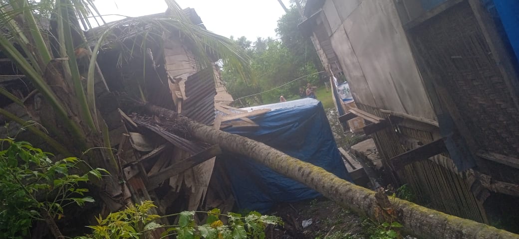 Sebelumnya, pohon kelapa setinggi puluhan meter tumbang dan menimpah rumah warga di Desa Bonne-Bonne.