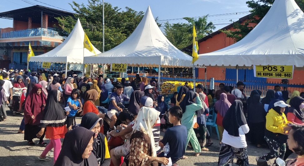 Kegiatan pasar murah ini disambut antusias masyarakat. Sejak pagi, warga telah memadati lokasi kegiatan untuk mendapatkan paket sembako dengan harga terjangkau.